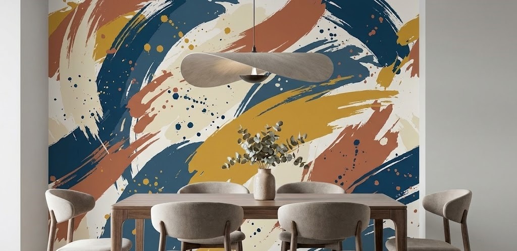Treat your wall like a canvas with an abstract wallpaper design. These patterns prioritize form, color, and artistic expression over recognizable motifs. From bold, paint-like splatters to subtle, flowing lines, abstract paper turns your dining room into a modern art gallery and a definite conversation starter.