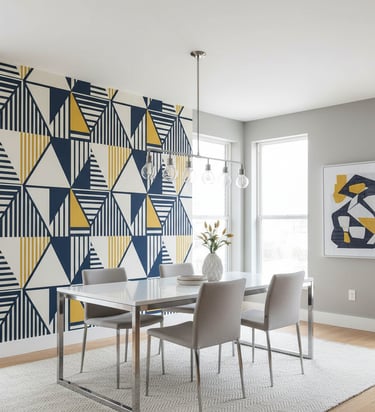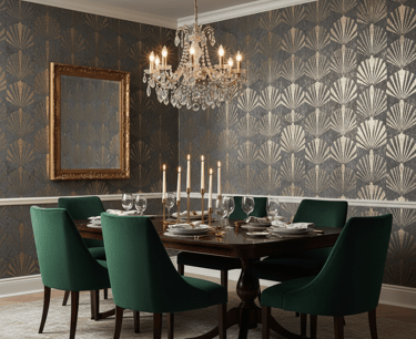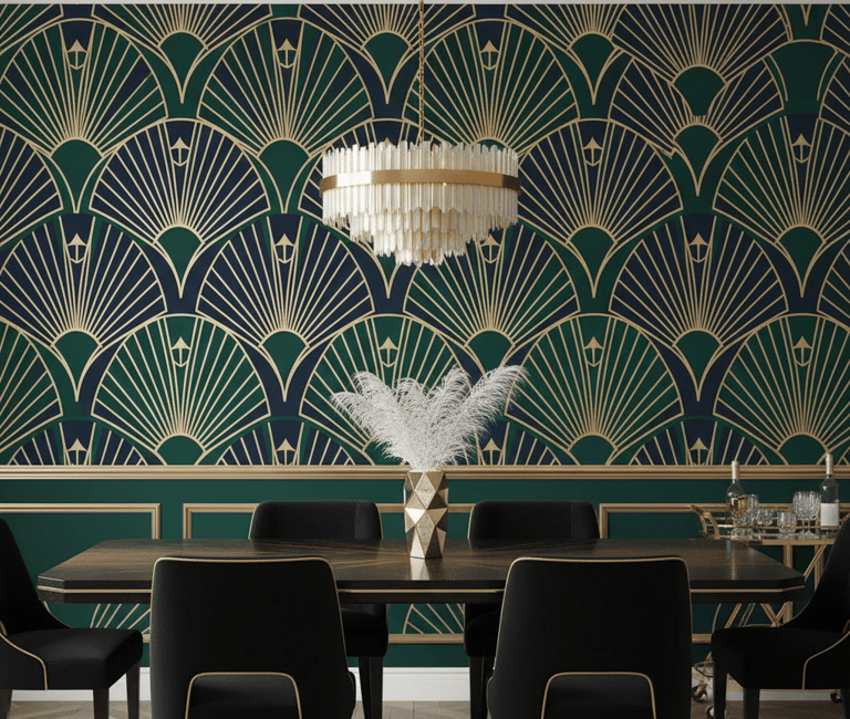 Capture the opulence of the Roaring Twenties with an Art Deco pattern. These designs are defined by strong geometric shapes, fan motifs, and chevrons, often highlighted with bold metallic lines. In rich colors like emerald, navy, or black and gold, this style creates a luxurious and glamorous setting for entertaining.