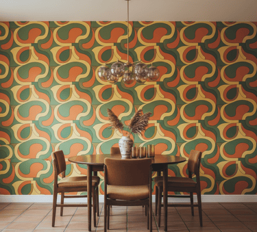 For a bold, nostalgic statement, look to patterns inspired by the 1970s. These designs often feature large-scale, curvilinear shapes, bold geometrics, and a distinct color palette of earthy tones like avocado green, harvest gold, and burnt orange. It's a fun, funky choice for a dining room with a distinct personality.