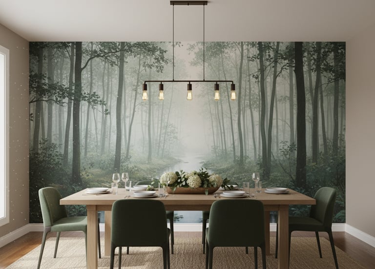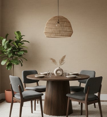 If your style leans more toward "hygge," a Scandinavian-inspired wallpaper is a perfect fit. These designs typically feature simple, clean lines, subtle patterns (like small-scale botanicals or simple geometrics), and a light, neutral color palette. They contribute to a calm, uncluttered, and inviting dining space.