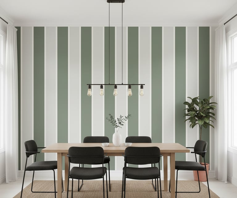 Stripes are a design classic for a reason. Vertical stripes can draw the eye upward, creating the illusion of a higher ceiling, which is perfect for smaller or lower-ceilinged rooms. Horizontal stripes can make a space feel wider. You can choose from wide, bold stripes for a modern look or delicate pinstripes for subtle, tailored elegance.