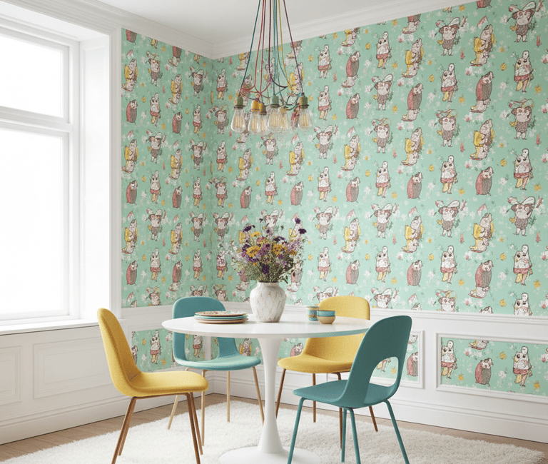 Let your personality shine with a whimsical wallpaper. This category includes everything from quirky animal illustrations and unique conversational prints to imaginative sketches. It's a fantastic way to make a dining room feel less formal and more reflective of your personal interests, creating a fun and joyful gathering space.