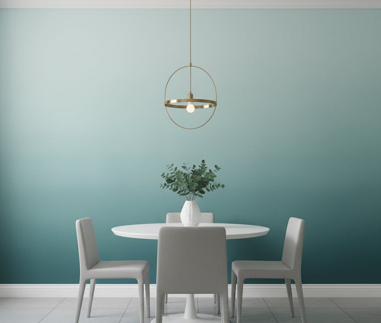An ombre design features a gradual blend from one color to another, often from light to dark or shifting between hues. This creates a soft, watercolor-like effect that is both modern and calming. It can add a subtle splash of color and a sense of movement to the walls without a hard, repeating pattern.