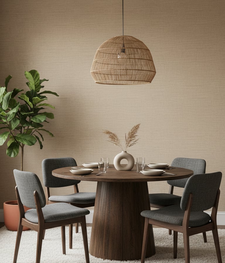 If you want to add dimension without a busy pattern, textured wallpaper is an ideal solution. Materials like grasscloth, cork, or papers mimicking linen or silk add tangible depth and warmth. This approach creates a layered, sophisticated backdrop that feels cozy and inviting, making it perfect for intimate dining areas.