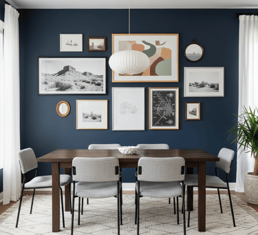 Art is a simple yet powerful way to express your personality in your dining area. Hang artwork, photography, or framed prints that reflect your style—whether abstract, nature-inspired, or minimalist. Mixing different frame styles or adding a large statement piece can create visual interest. You can also include personal touches like family photos or handmade crafts to make the space feel uniquely yours.