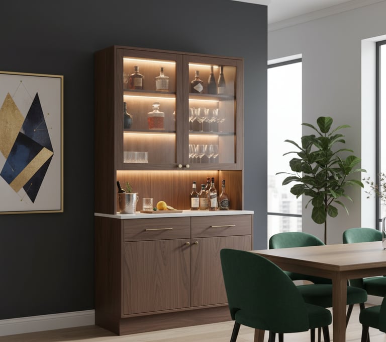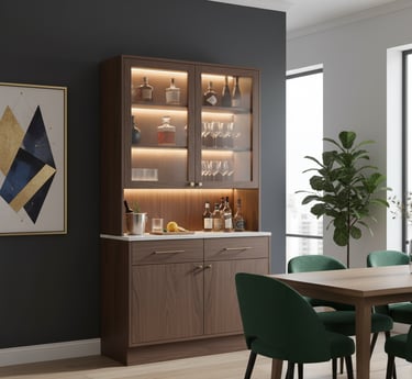 A well-designed bar cabinet brings sophistication and practicality to your dining area. Choose one that complements your existing décor—wooden finishes offer warmth, while glass or metal add a sleek, modern edge. Use open shelves to display your favorite glasses and bottles, or add subtle lighting inside to create a soft evening glow. A compact bar cart is another great option if you’re short on space but still want a dedicated spot for entertaining.
