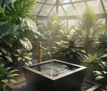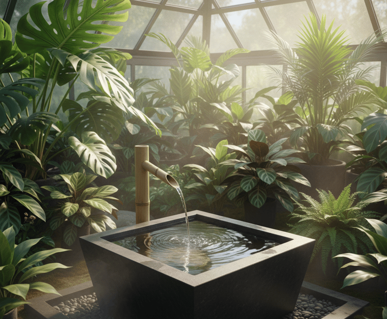 The sound of trickling water enhances the sensory experience of a garden. Integrated water features, such as modern square basins or small fountains, add a calming auditory element. Water features also help regulate humidity levels, which is beneficial for many tropical plant species.