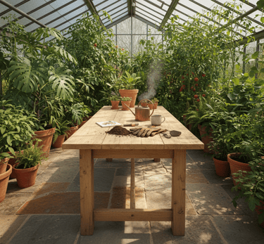 Just like a dining room, a large greenhouse benefits from a focal point. A rustic wooden centerpiece table acts as a communal hub for potting, dining, or displaying your finest specimens. It grounds the room and invites people to gather, blurring the line between a garden workspace and a social area.