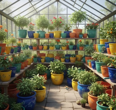 While terracotta is a classic choice, don't be afraid to mix in colorful pots and containers. Using glazed pots in shades of blue, yellow, or teal can brighten up the lower levels of your greenhouse and create visual interest even when plants are not in bloom.