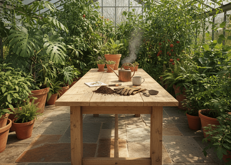Finally, a productive greenhouse needs a command center. A dedicated workstation with tools, complete with a flat surface for potting and a grid for hanging trowels and shears, keeps your workflow smooth. Having a designated spot for every tool means less time searching and more time gardening.