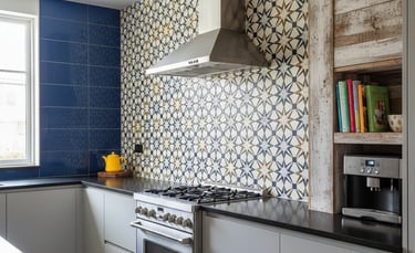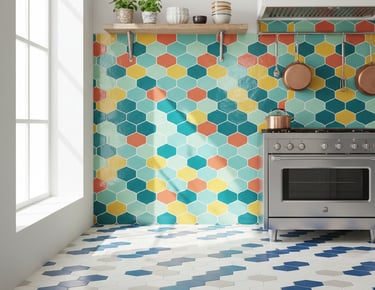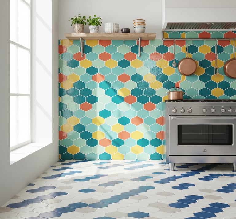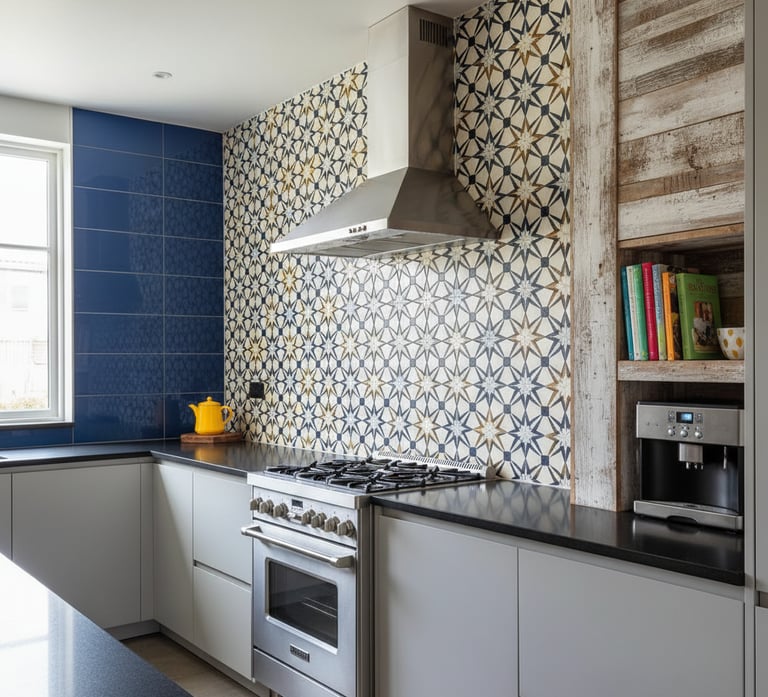 Infuse a sense of fun and energy into your kitchen with whimsical tile patterns. This can be achieved with brightly colored tiles, unique shapes (like hexagons, fish scales, or arabesques), or by laying traditional tiles in a creative layout like a herringbone pattern. These playful motifs and designs can turn your floor or backsplash into a work of art that sparks joy.