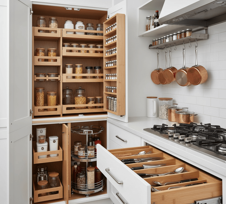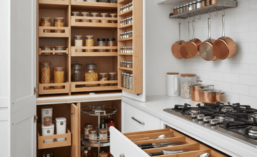 An organized kitchen is an efficient kitchen. Smart storage solutions are essential for maintaining a tidy space. Utilize vertical space by installing wall-mounted racks for pots and spices. Inside cabinets, use drawer dividers for utensils, pull-out shelves for easy access to pantry items, and lazy Susans for hard-to-reach corner cabinets. These strategies maximize every inch of your kitchen.