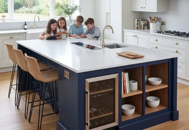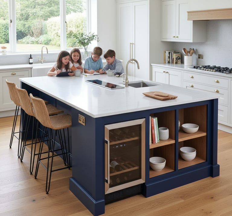 A kitchen island can be so much more than just extra counter space. A truly multi-functional island acts as the central hub of the kitchen. Incorporate bar stools for a casual dining or homework area, include a prep sink or cooktop for meal prep, and maximize its utility with built-in storage like shelves, drawers, or even a wine fridge to minimize clutter.