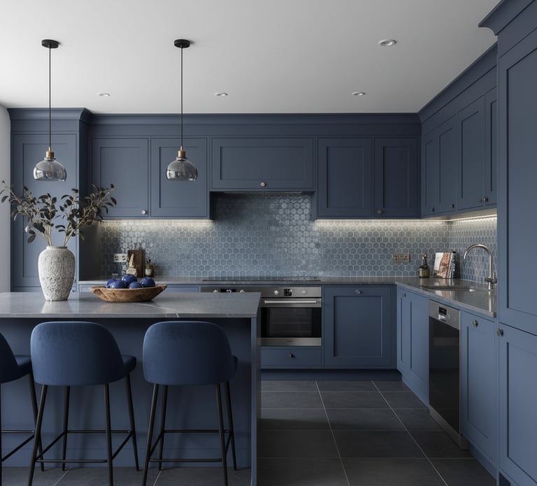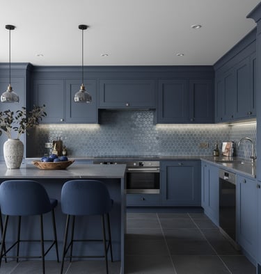For a high-impact, sophisticated look, consider a monochromatic theme. This involves choosing a single color and using various shades and tints of it throughout the space. To prevent it from feeling flat, the key is to pair different textures and finishes, such as matte cabinets, a glossy tile backsplash, and stone countertops, all within the same color family.