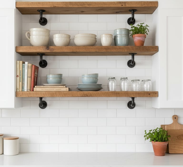 Open shelving is a stylish and functional addition that can complement many kitchen designs, from farmhouse to industrial. It allows you to showcase your favorite dishware, glassware, or cookbooks, making the space feel more open and personal. Consider using reclaimed wood for a rustic touch or sleek metal brackets for a more modern contrast. The key is to keep it organized for maximum visual appeal.