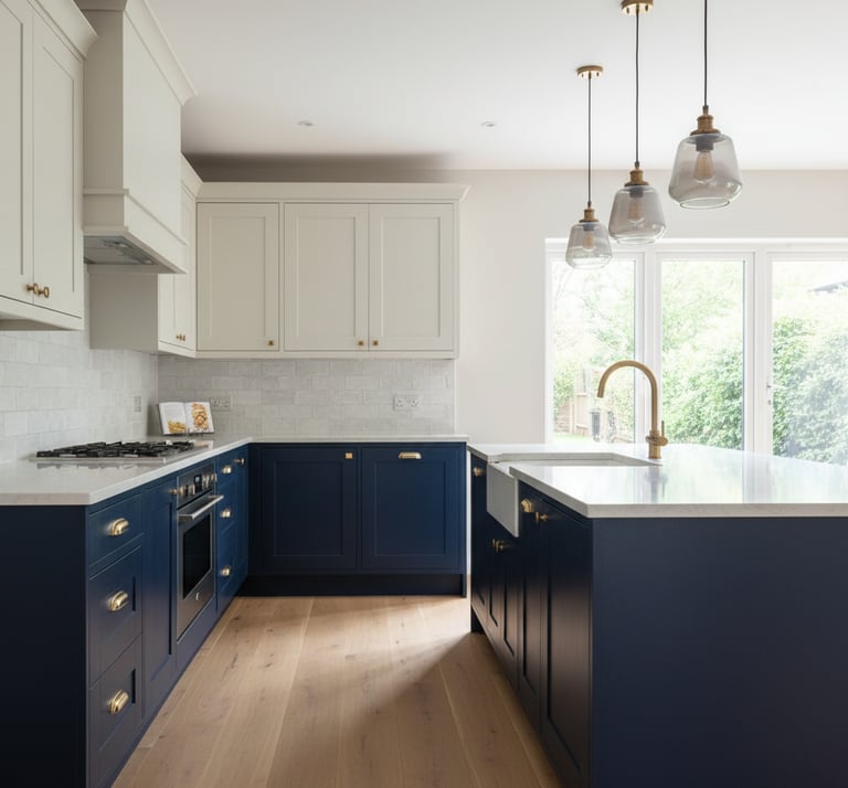 For an immediate visual upgrade, consider two-toned cabinets. This design choice adds depth, character, and a custom feel to your kitchen. A popular approach is to use a darker, bolder color for the lower cabinets (like navy blue or charcoal gray) and a lighter, neutral hue for the upper cabinets. This grounds the space while keeping it feeling open and bright.