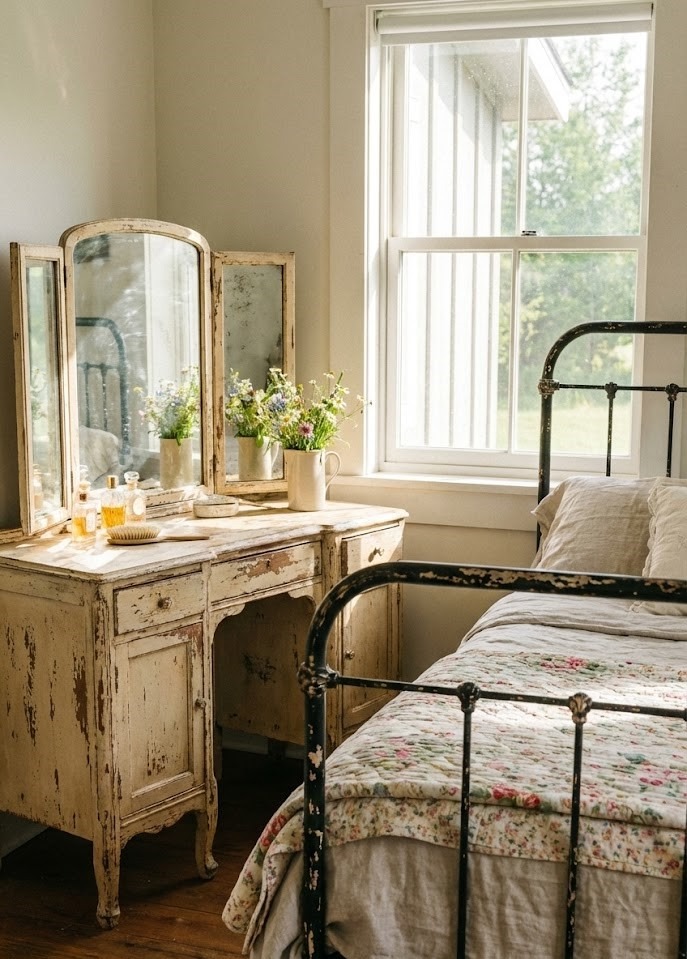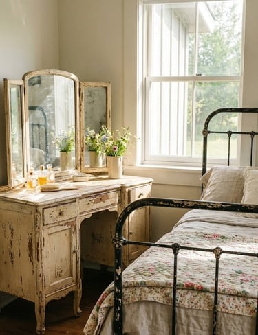 A cottagecore room thrives on pieces with a past. Hunt for a wrought-iron bed frame, an antique wooden vanity, or a distressed dresser. These items don't have to be perfect; in fact, a little chipped paint or a weathered patina only adds to the "lived-in" story of your home.