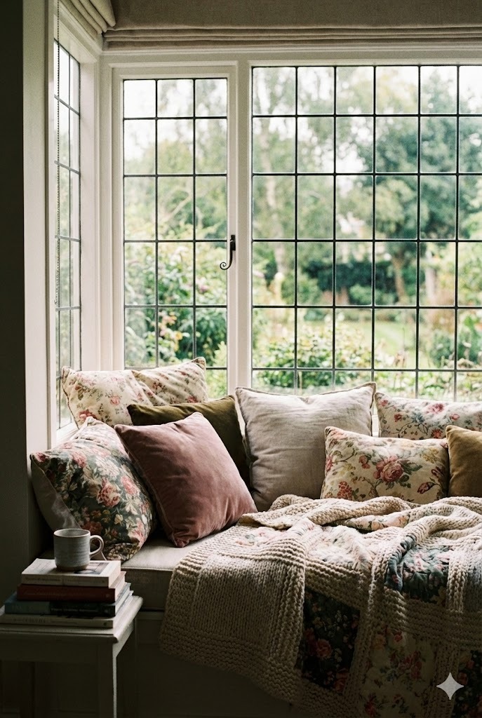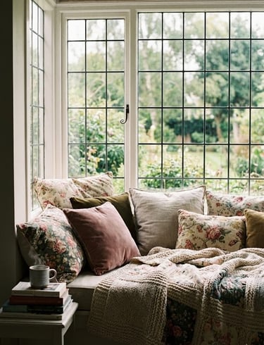 If your architecture allows, a window seat filled with cushions and quilts is the ultimate cottagecore luxury. It is the perfect spot to watch the rain or enjoy the morning sun, serving as a bridge between your cozy interior and the natural world outside.