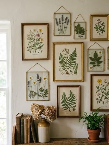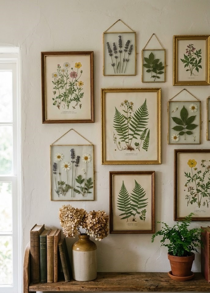 Bring the study of nature into your decor by hanging vintage botanical posters or framing your own pressed flowers. These pieces serve as a reminder of the beauty of the changing seasons and add a sophisticated, academic touch to the whimsical vibe.