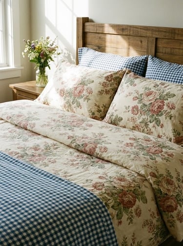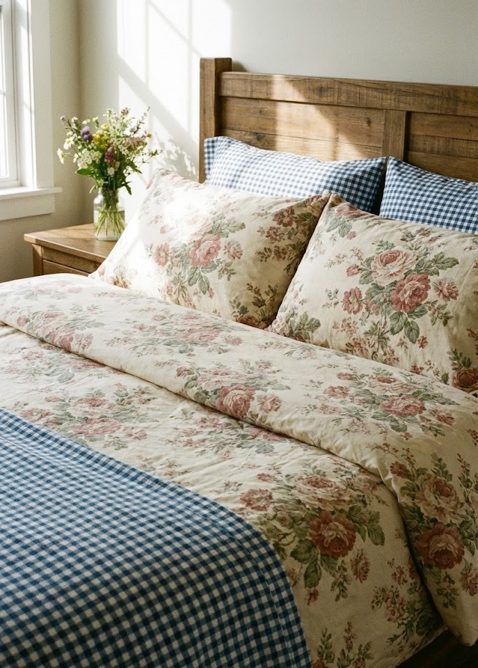 While florals are key, gingham provides the perfect visual contrast. A set of checkered pillowcases or a gingham throw adds a touch of "farmcore" charm. This pattern is versatile and helps prevent the room from feeling overly precious or formal.