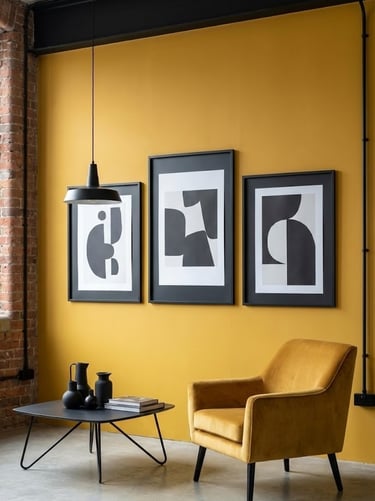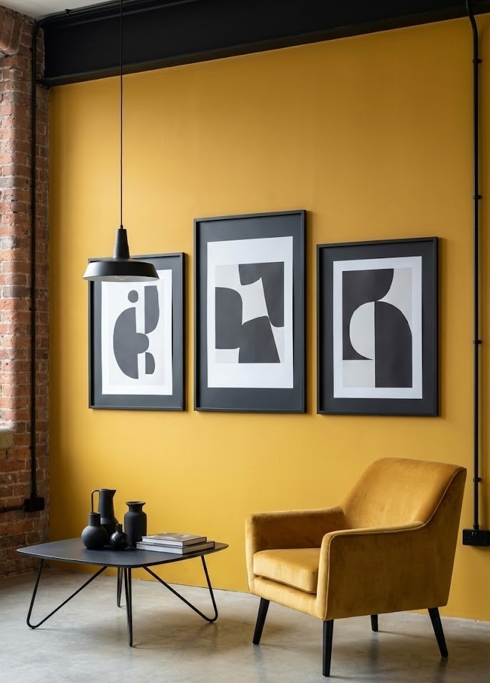 How to do it: Use black picture frames, light fixtures, or coffee table legs against a yellow backdrop.