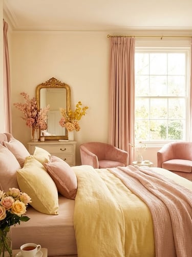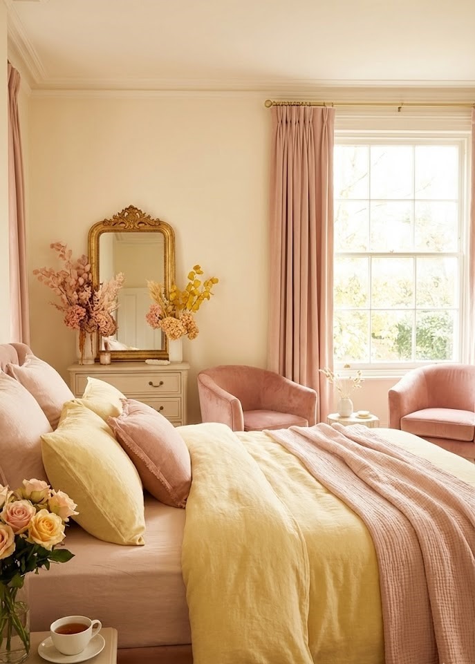 This is a trend that is taking over interior design. The warm undertones of yellow and blush pink harmonize perfectly, creating a soft, romantic, and inviting atmosphere.