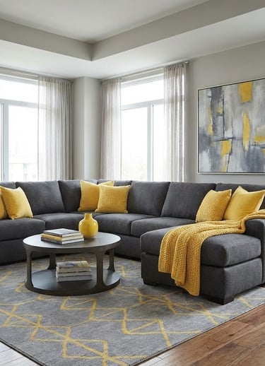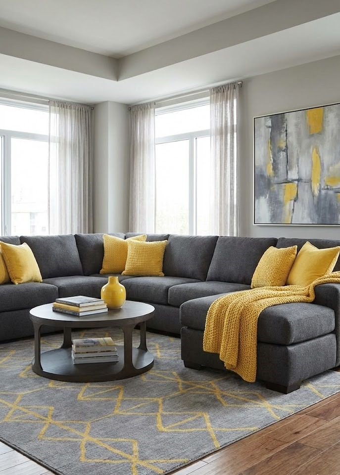 Design Idea: Try a charcoal gray sectional paired with sunshine-yellow accents for a modern, sophisticated vibe.