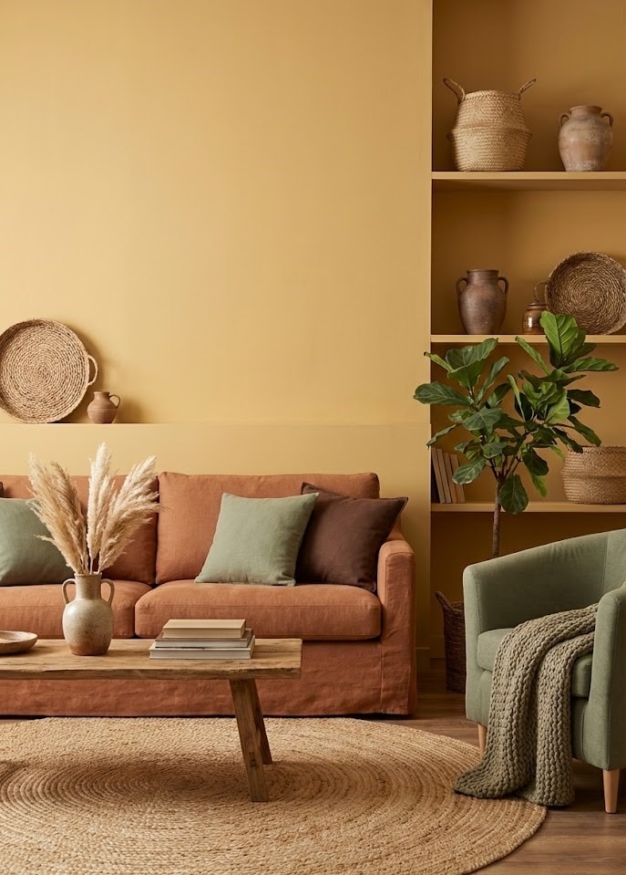 13. Earthy Comfort with Honey Yellow and Terracotta
