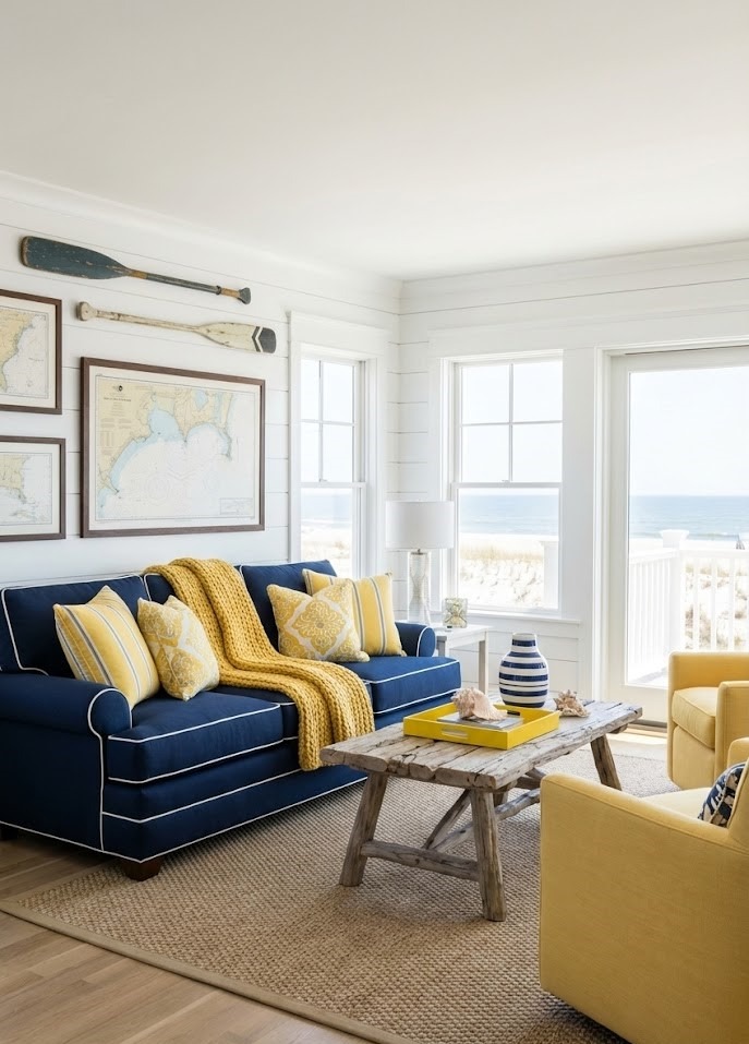 6. Coastal Vibes with Navy Blue and Yellow