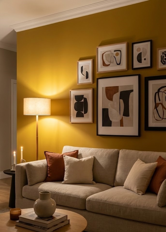 For those who want a focal point, a mustard yellow accent wall is a game-changer. It’s sophisticated, earthy, and provides a stunning backdrop for art or a neutral sofa.
