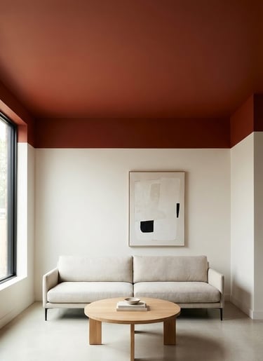 Paint is the most affordable way to transform a ceiling, but the "Color Block" trend takes it a step further. This involves painting the ceiling a bold, contrasting color—like navy, emerald, or terracotta—while leaving the walls neutral.