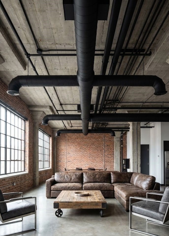 Instead of boxing in your HVAC systems, embrace the "unfinished" look. Exposed ductwork, pipes, and conduit are hallmarks of the industrial aesthetic.