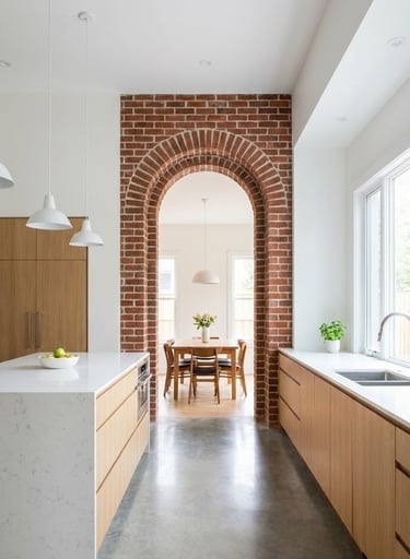 Real-World Application: A brick veneer arch separating the kitchen from a sunroom or breakfast nook.