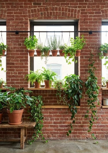Real-World Application: Install a metal rod across a window set in a brick wall and hang pots of basil, rosemary, and thyme for a functional indoor garden.