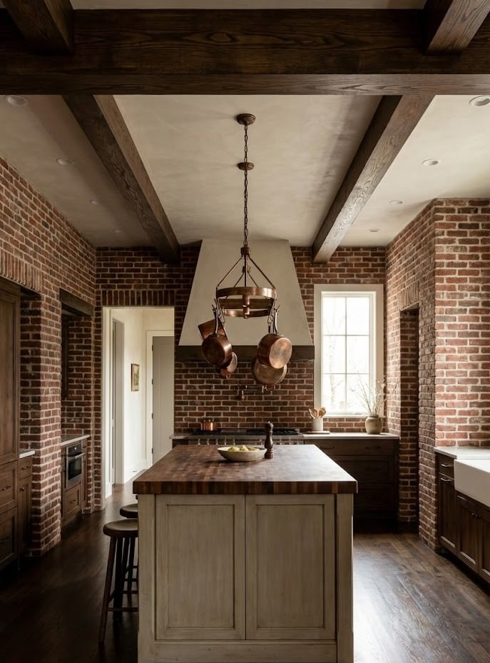 Red brick in the kitchen is a bold design choice that pays off by adding immediate history and soul to your home. It creates a space that feels grounded and permanent in an era of fast furniture and disposable trends.