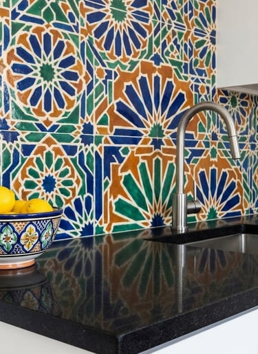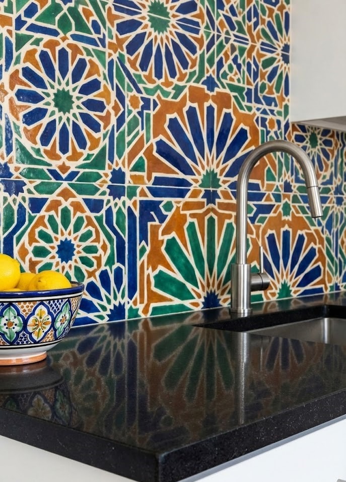 Black quartz serves as the perfect neutral canvas for a statement backsplash. Whether you are eyeing intricate Moroccan tiles or bold geometric patterns, the solid black surface frames the backsplash, allowing the colors and shapes of the tile to take center stage without visual competition.