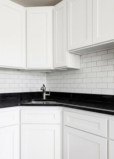 This combination is the gold standard of kitchen design. Pairing polished black granite with crisp white cabinetry creates a high-contrast punch that makes the space feel bigger and more intentional. The white reflects light, while the black grounds the room, providing a balanced, "crisp" aesthetic that never goes out of style.
