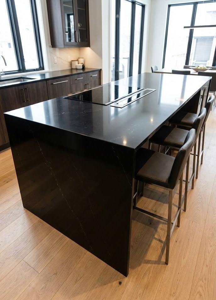 The edge of your countertop is a major design opportunity. For a luxury look, consider a waterfall edge, where the black stone continues down the side of the island to the floor. Other options like mitred edges create the illusion of a massive, thick slab, adding immediate architectural weight to the room.