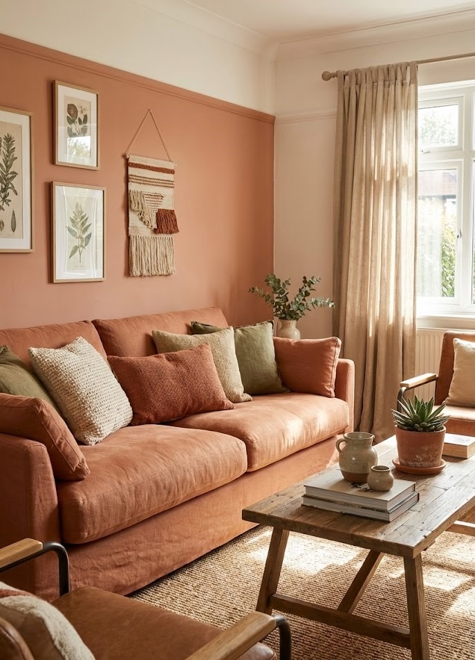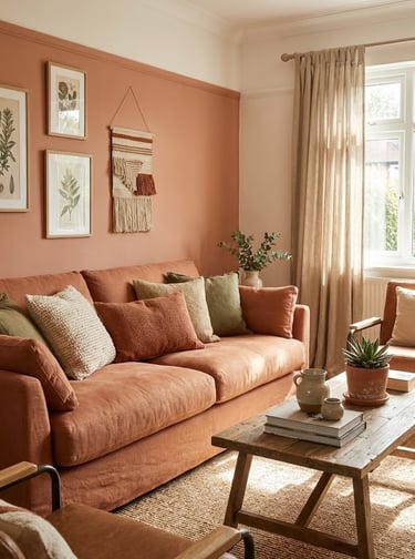 After years of gray-heavy design, Terracotta is making a massive comeback. This sun-baked shade provides an instant injection of warmth without feeling overly bright like orange or pink. It strikes a perfect balance between relaxed and inviting, making it a favorite for living rooms and social spaces where the goal is to foster a "lived-in" and approachable atmosphere.
