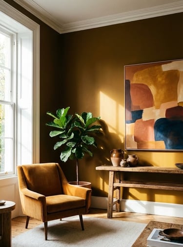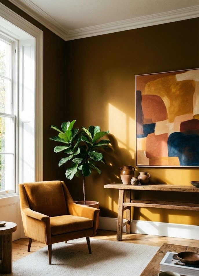We are seeing a notable shift from pale yellows to deeper, more "sun-drenched" expressions like Bronze Ochre. This shade is highly adaptable and performs exceptionally well in both north- and south-facing rooms. Because of its strength, it can serve as a dominant wall color that feels bold and individualistic without becoming overwhelming. It adds a golden, sophisticated glow that feels both modern and retro-inspired.