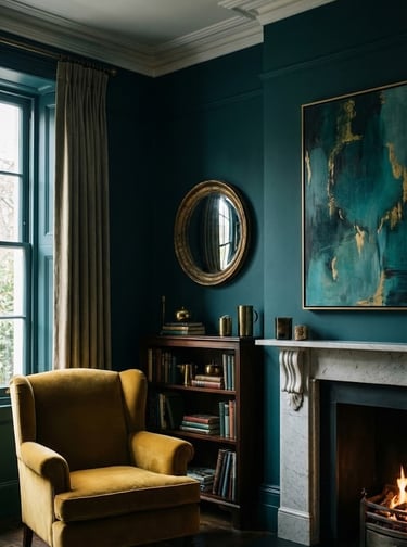 For those looking to move away from light blues, Midnight Teal offers a dramatic yet soothing alternative. This deep blue with strong green undertones provides a "mooring" effect for a room, giving it a sense of weight and permanence. It is a classic choice that fits perfectly in both traditional and contemporary settings, offering enough depth to anchor a space without feeling as stark as true black or navy.