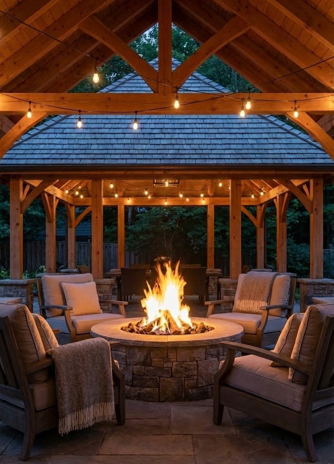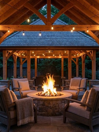 A pavilion with a fire feature allows you to extend your outdoor season into the colder months.