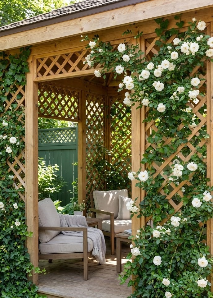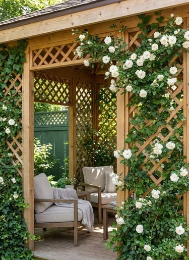 Softening the Look: Train climbing ivy or roses to grow up the lattice for a "living wall" effect.
