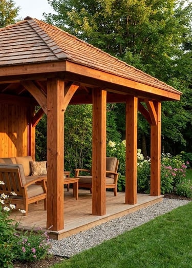 Scale Mismatch: A pavilion should not take up more than 25% of your total yard space. Ensure it has "breathing room" to keep the yard from feeling cluttered.