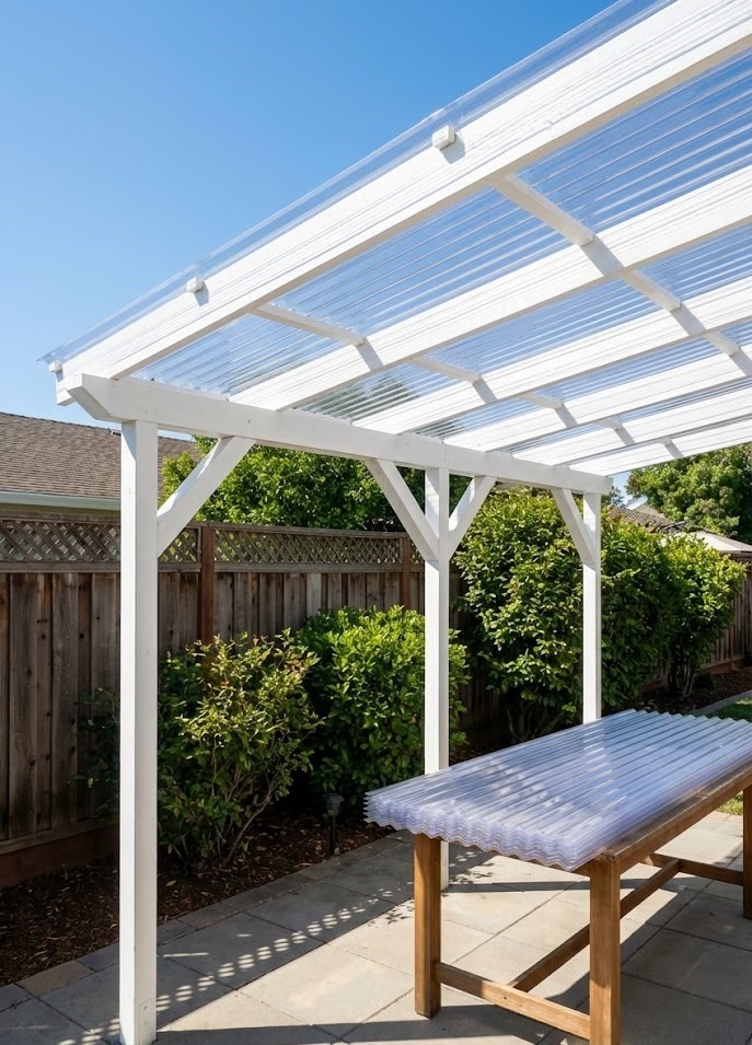 Which roofing material lasts the longest? Metal panels and polycarbonate sheets are the most durable, often lasting 15+ years. Fabric and asphalt shingles typically need replacement in 5 to 7 years.