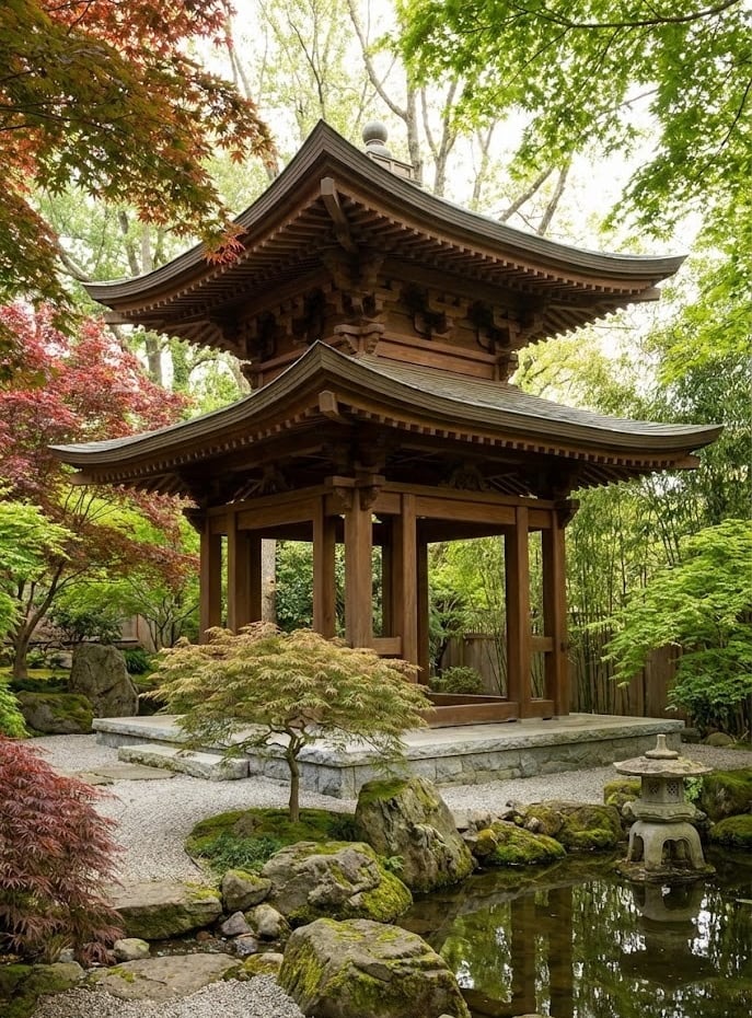 This style utilizes layered eaves and curved beams for a striking, meditative look. While the joinery is more complex, the result is a stunning focal point.