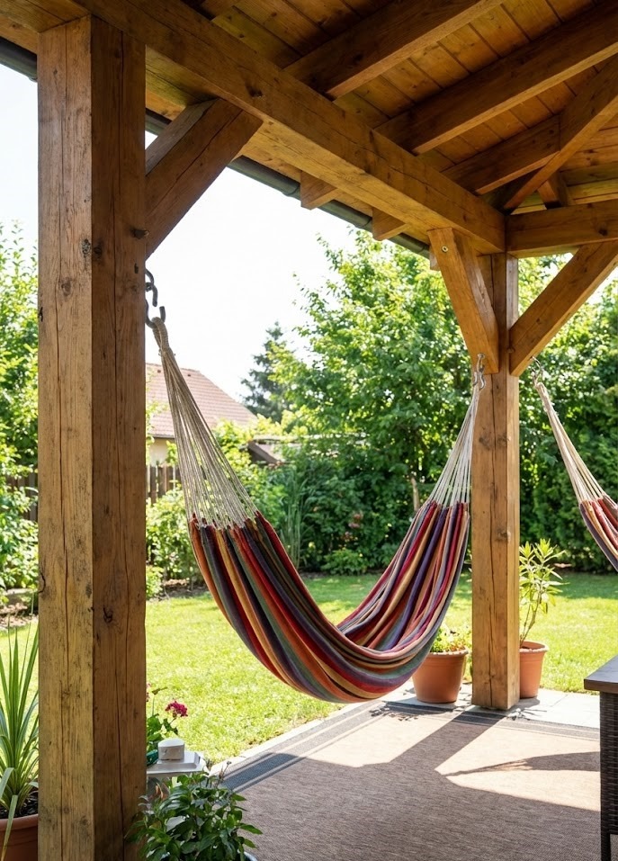 Why settle for one use when you can have two? By using heavy-duty 15x15 cm (6x6 inch) support beams, you can safely install hooks for hammocks.