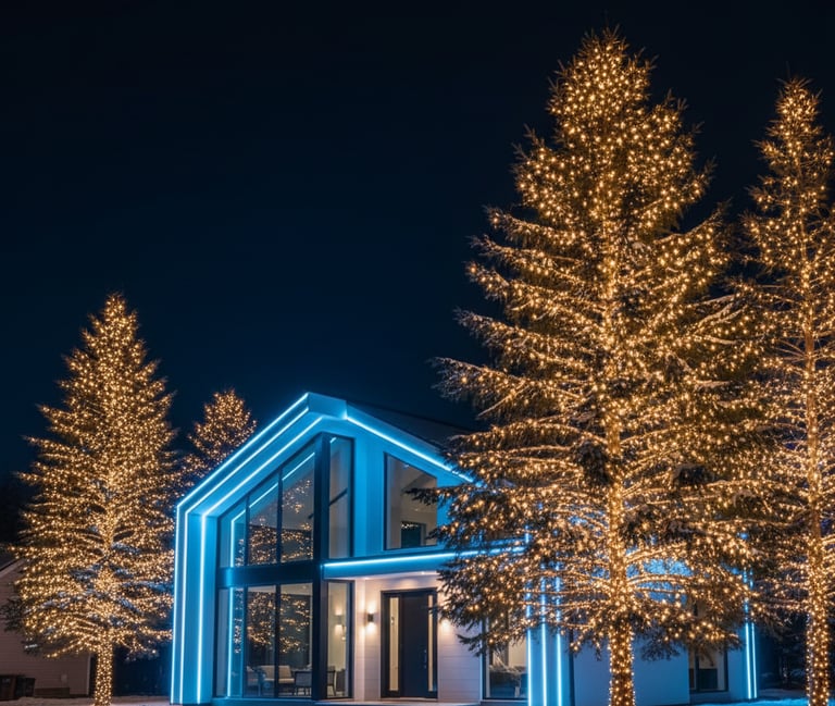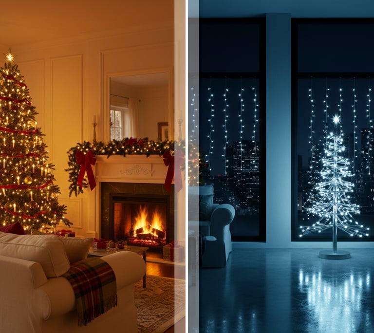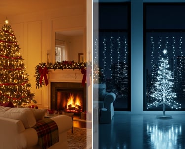 If your home's interior design leans modern with cool tones like grays, blues, and steel, warm white lights provide essential balance. They prevent the space from feeling cold or sterile during the holidays, adding just the right amount of cozy energy
