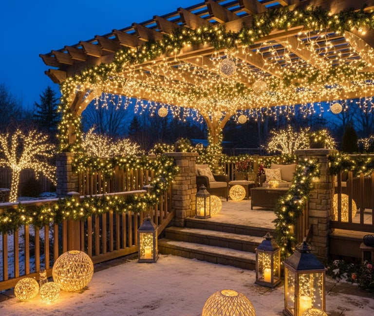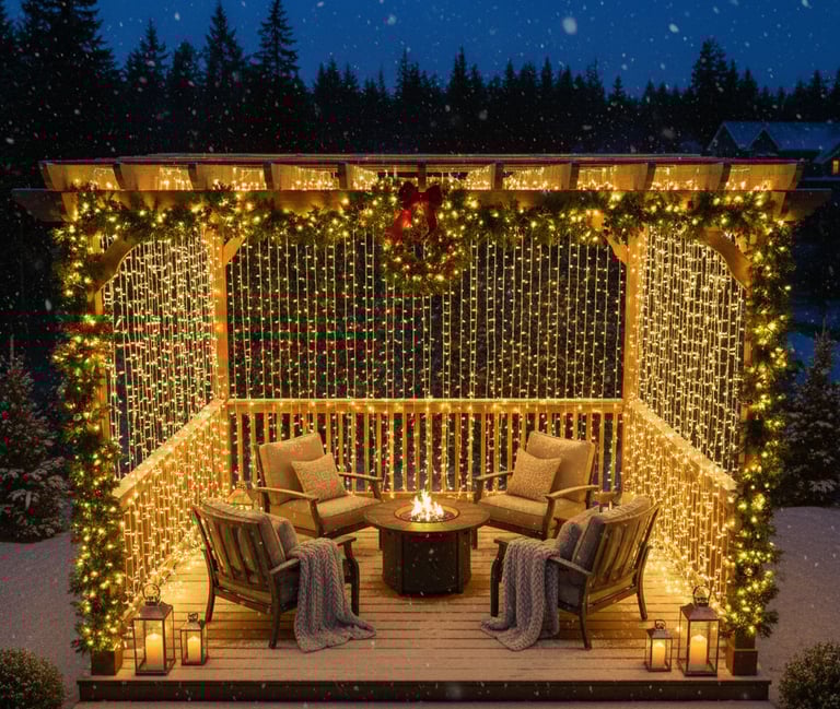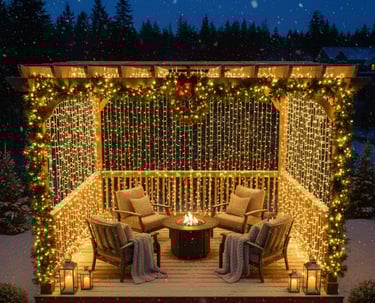 Outdoor structures are a perfect canvas. Hanging "curtain" or "icicle" lights from the roof of a pergola or gazebo creates a magical ceiling effect. This sense of enclosure makes a large, open space feel intimate and celebratory, perfect for a winter party.