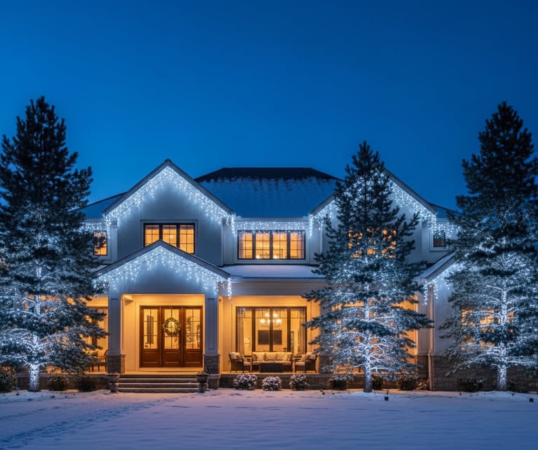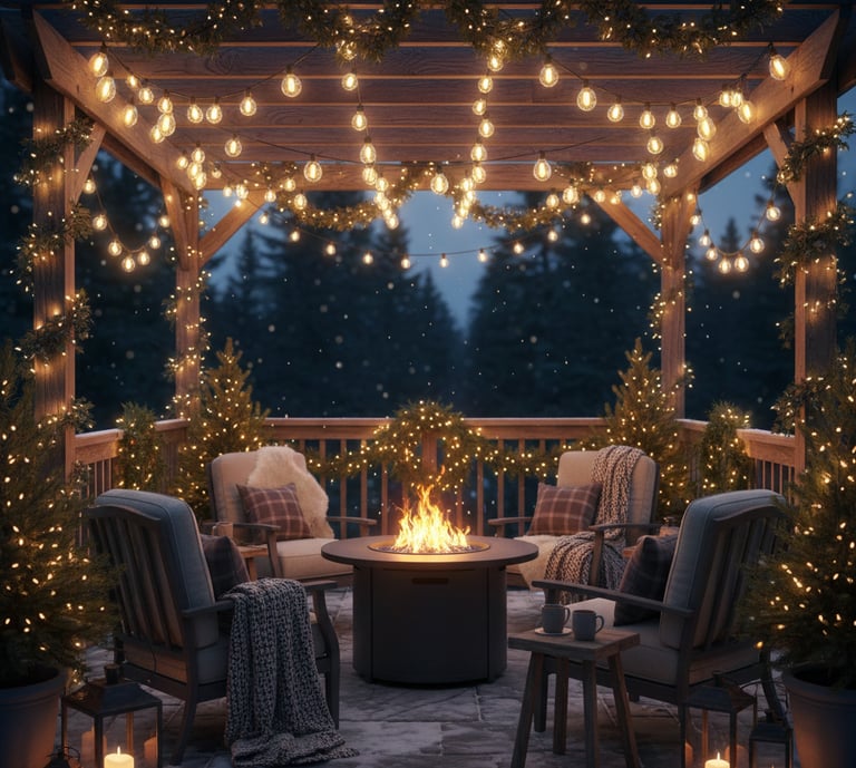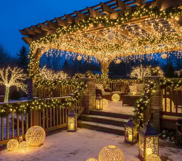Extend your home's festive feel to your outdoor spaces. Patios, decks, and porches become enchanting winter retreats when draped in warm white lights. The soft glow has a unique way of "warming up" the cold winter air, making the space feel welcoming for a quick cup of cocoa or an evening gathering.